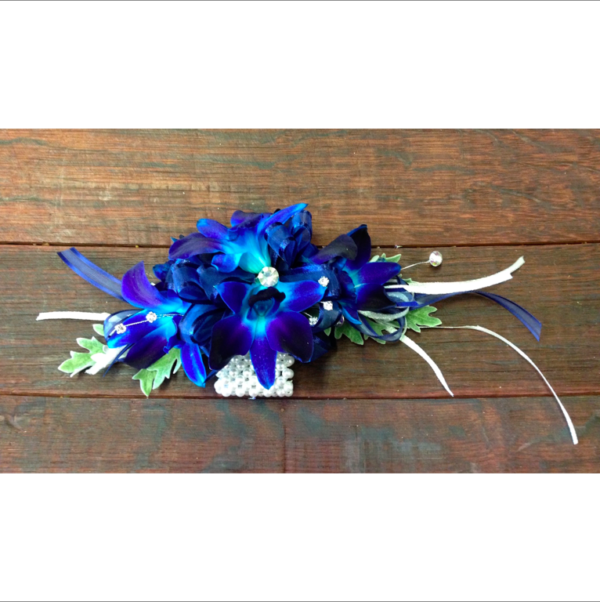 Blue Pearl Bracelet. Blue orchid corsage for Prom. Prom Flowers. White Roses corsage. Flower delivery near Richmond CA. Local Florist.