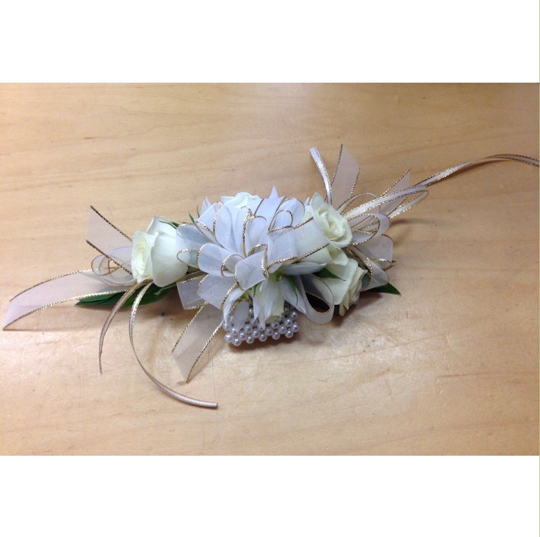 Petit White Corsage. White roses corsage for Prom. Prom Flowers. White Roses corsage. Flower delivery near Richmond CA. Local Florist.