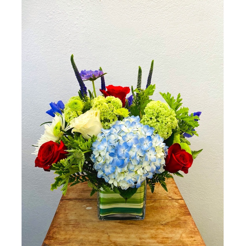 Some days we just want to feel loved. A beautiful way to share with our loved ones is with flowers. Send this lovely and elegant cylinder of hydrangeas, iris, roses and seasonal blooms.
